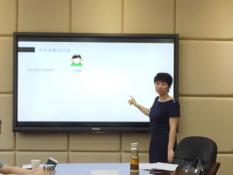 此次思享会的主题是“知行合一,高峰体验——‘顶点课程’深度报道采写教学体会分享”,陈老师根据深度报道课程的教学成果分享了教学经验。