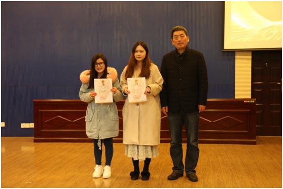 黎大志为获得大广赛全国优秀指导教师称号的张国光、刘振老师以及两项全国一等奖作品的学生代表颁发获奖证书。罗明等为其他全国等级奖及省级奖获奖学生颁发获奖证书。