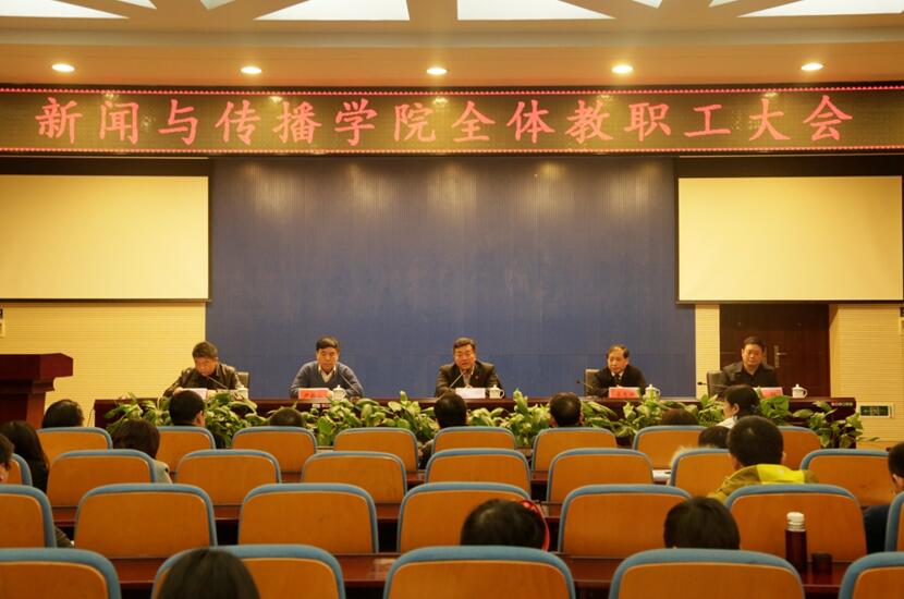 (通讯员 马思奇 马欣译)1月23日晚,我院在书山论坛举行全体教职工大会。校党委书记李民、副校长廖志坤、党委组织部部长王辉出席会议。会议由院党委书记银海强主持。