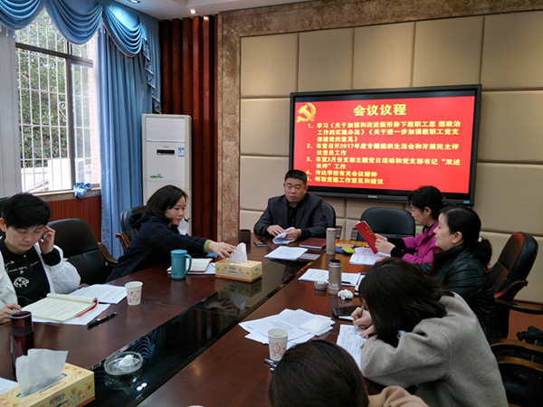 银海强传达了学校第一次党务工作例会精神,通报了迎接省委巡视工作的情况和要求,强调了意识形态工作,布置了“两会期间”安全稳定工作和党支部专题组织生活会与民主评议党员工作,对开展主题党日和党支部书记“双述双评”工作提出了具体的要求。