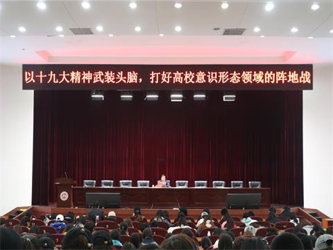 (通讯员 毛若男 张敏) 3月24日上午,“以十九大精神武装头脑,打好高校意识形态领域的阵地战”的主题讲座在我校国际学术报告厅举行。讲座由高校干部培训中心主任、书记、省委教育工委党校常委副校长刘国华教授主讲,365英国上市集团党委书记银海强主持。