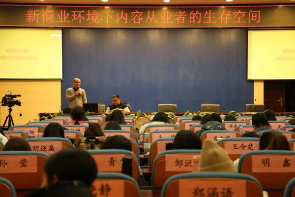 肖好晨认为随着现今网络新媒体的崛起,我们如果把事业单单地局限在电视这个传统的行业上是远远不够的。“以后你们百分之九十九的人都不会在电视台工作,而是在一个新的商业环境下,你们会渗透到内容所在的每一个渠道。”肖好晨用一句话引出主题,具体探讨内容从业者到底通过哪些渠道生存。他分享了自己从事传媒业以来的感受和累积的经验,结合互联网行业的例子,给大家进行讲解,解开其中的奥秘。讲座围绕“是怎样的一个环境?这些变化给我们带来了什么?怎么应对?”三个问题展开了详细的讲解。