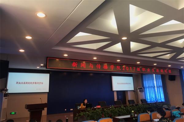 程卓 计宣辰)12月4日下午,我院第三堂17级新生职业生涯规划课在书山论坛开讲,学工办主任欧阳丹玲为主讲人,17级辅导员林雅心与17级部分班级的同学参加了此次课程。