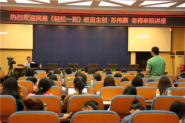 (通讯员 蒋怡夏 杨楠 )10月10日晚,书山论坛座无虚席。会场内,观众时而轻声细语,时而捧腹大笑,时而掌声雷动。网易《轻松一刻》栏目主创苏伟麟老师作客书山论坛,带来题为“不只是搞笑逗比——热点话题的正向、娱乐化解读”的讲座。院党委副书记王云到场参加,讲座由团委副书记张磊主持。