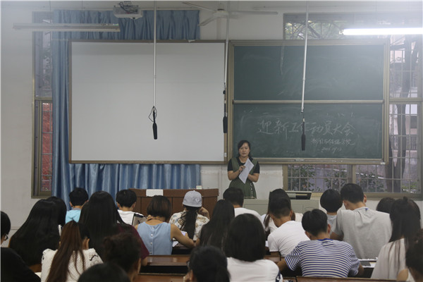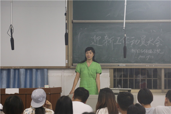 冯耀丹)9月13日晚,我院2016级迎新动员大会在学院101教室举行。院党委副书记王云作出工作指示,学工办主任欧阳丹玲就迎新工作的分工安排向在座学生干部进行说明。团委副书记张磊、2015级辅导员彭述生及2016级辅导员曹竞婧出席大会。团委书记陈淼担任大会主持人。