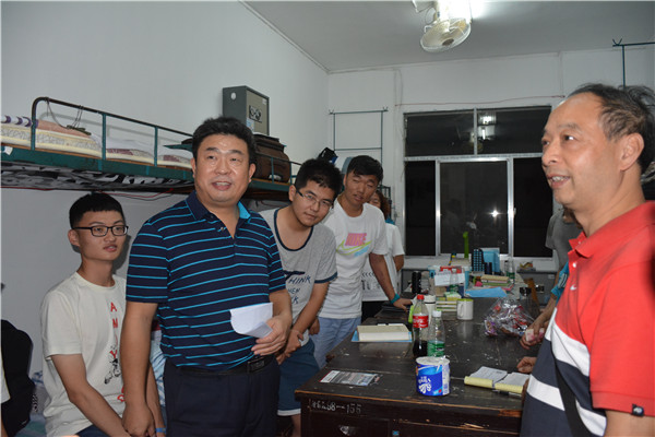 (刘畅 刘少蕊)9月17日晚,我院党委书记银海强,副院长肖燕雄,党委副书记王云,副院长闵素芬及各专业班导师一行到长塘山及江边二舍走访了我院2016级新生宿舍,慰问新生。