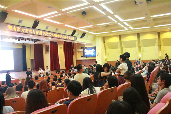刘畅)6月8日晚,我院2013级广播电视编导专业毕业展映“光影情人梦”在音乐学院和乐楼举行,展映会吸引了众多学生前来观看,现场座无虚席。院党委书记龚向明,副院长闵素芬、周国清,党委副书记王云,学工办老师及专业课老师莅临现场。编导班学生的家长也来到场观看展映。展映会上播放了19个由编导班学生自编自导的影片,影片类型多样,包含爱情片、悬疑片、纪录片、剧情片等。此外,编导班学生还为观众带来了精彩的串场秀节目。