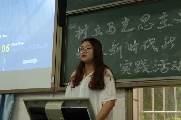 团委社创部部长屠明针对今年大学生暑期社会实践活动进行讲解,在提到今年的活动报名时,提出“由衷的希望在座的同学都去感受一下不同的暑期生活,让自己的经历为大学四年时光增添一笔无法抹去的亮色”。
