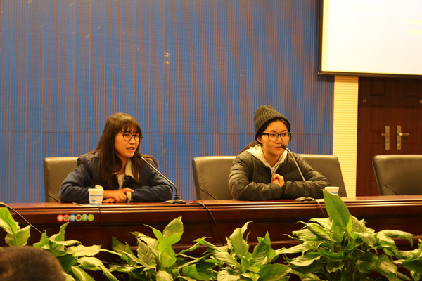 讲座以问答的形式展开。嘉宾耐心回答了同学们提出的“如何进行真人秀的嘉宾选择”、“怎样进行台本设置来突显节目嘉宾的性格”、“如何与节目嘉宾建立信任”等问题。面对“如何取得节目嘉宾信任”的问题,黄丹说到:“编剧在录制节目时要为节目嘉宾着想,与节目嘉宾接触时要掌握说话的艺术。”对于同学们提出的“如何选择节目嘉宾”等问题,罗祎透露说:“一般我们都会提前与候选嘉宾接触,了解嘉宾是否符合节目的人物定位”最后,主讲嘉宾鼓励同学们要在大学期间不仅要多多阅读,而且要将课本上的知识与社会经验相结合,读万卷书不如行万里路。