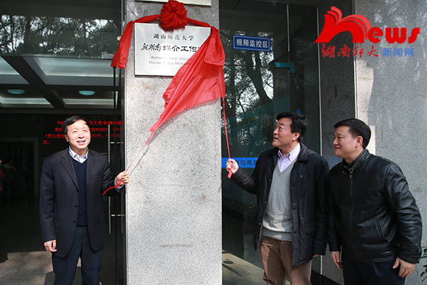 签约仪式后,蒋祖烜、李民、蒋洪新共同为“新湖南”媒介工作室揭牌。