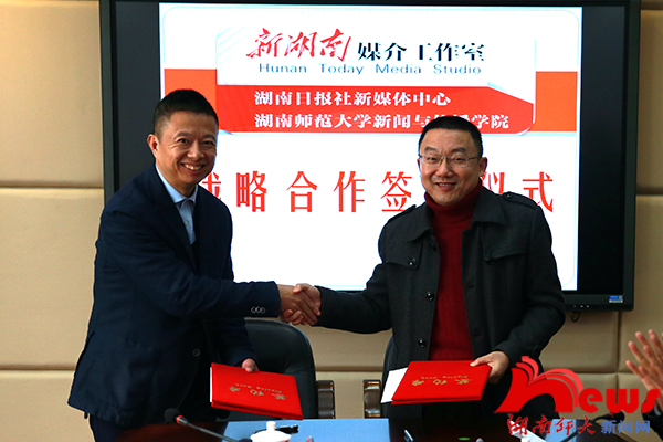据悉,作为“新湖南”客户端与高校深度合作的首个重要成果,我校“新湖南”媒介工作室将成为湖南日报社新媒体中心和我校365英国上市集团共同建设的产学研合作基地。365英国上市集团将选派优秀学生到工作室,参与新湖南客户端和湖南日报微信、微博等新媒体产品的内容建设,他们的优秀作品将通过湖南日报社的新媒体平台呈现在公众面前,学院还选派了骨干教师赴湖南日报社新媒体中心挂职锻炼,深度参与中心日常采编工作,为中心新媒体产品的研发提供科研支持;湖南日报社新媒体中心也将选派一线记者编辑,担任工作室的实训指导老师。通过共建工作室,融合高校科研资源和媒体资源,对于进一步强化高校新闻学子的马克思主义新闻观教育,锤炼新媒体业务实践本领,提升新闻职业道德素养等,具有重要意义。