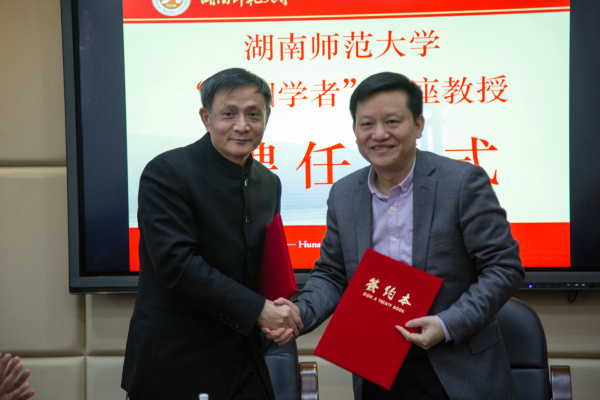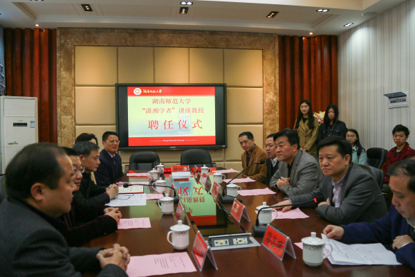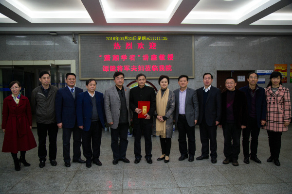 (通讯员 管冯瑞 庄德通)3月23日上午,谭健将军受聘“潇湘学者”讲座教授仪式在我院二楼会议室举行。校党委书记李民、校长蒋洪新、校党委副书记刘起军、副校长廖志坤等出席仪式,仪式由李民主持。