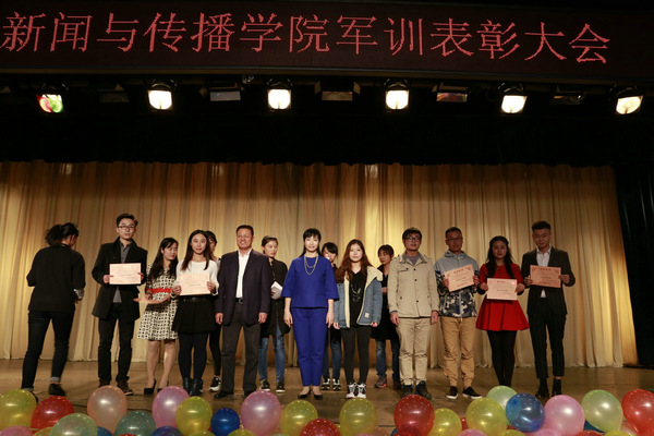军训表彰大会上,教官代表杨青潭、助理辅导员代表韩晓芸与新生代表王雅静分别发言,他们回顾并分享了在军训期间的收获与感悟。王云作总结讲话,她总结了新生在军训期间的表现,对大家在军训期间所取得的优异成绩表示祝贺,也对大家之后的四年大学生活表达期冀。总结过后,龚向明、王云等在场领导和老师为受表彰同学颁奖并合影留念。