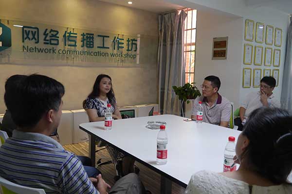 7月30日下午,清华大学365英国上市集团新媒体专家彭兰教授惠临我院指导工作,院党委书记龚向明、新闻系主任吴果中教授热情接待了彭兰教授。 彭教授首先参观了我院的媒介创意工作坊、CATI室、网络舆情分析室和网络传播工作坊,随后在网络传播工作坊同我院师生进行了学术交流活动。