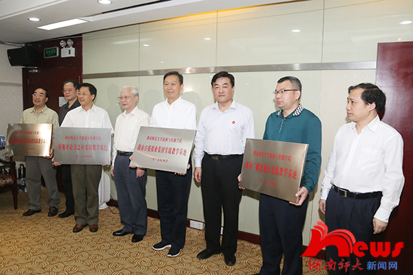 部校共建院务委员会全体委员,实践教学基地建设领导成员和联络员,省委宣传部、省教育厅、我校有关部门负责人和新传院师生代表等参加签约授牌仪式。