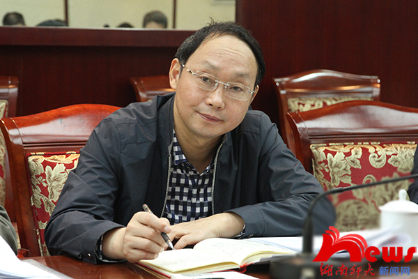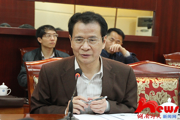 孔和平首先宣读了省委宣传部关于原则同意与我校共建新闻学院的部务会纪要。他对部校共建新闻学院表示祝贺,对省教育厅和我校对共建工作的支持表示感谢,对部校共建新闻学院充满信心。为做好部校共建新闻学院工作,孔和平提出了三点要求:一要高视角谋划。部校共建新闻学院要着眼于新闻传播教育与新闻传播人才的培养,培养“为我所需、为我所用”的人才,培养拥护马克思主义新闻观的人才;要着眼于发挥在新闻传播方面引领的作用、示范的作用、辐射的作用;要着眼于媒体的发展趋势,尊重新闻传播规律和人才培养规律。当务之急是完善好共建方案。二要高起点开局。首先要拿出一些项目来,既要有长远的项目,又要有当前的项目,根据项目安排经费;其次要探索部校共建的工作机制,向试点单位学习,建立协调配合、运行高效的工作机制,包括部、厅、校层面的,媒体与学院的合作,科研部门与学院的合作等。三要高标准推进。我们的目标是把新闻学院建设成为新闻传播人才培养的重要基地,新闻传播科研的基地,湖南省党政机关、企事业单位的新闻智库。孔和平相信,各方精诚团结,共同努力,完全有基础有条件把部校共建新闻学院建设成为全国知名的一流的新闻学院。