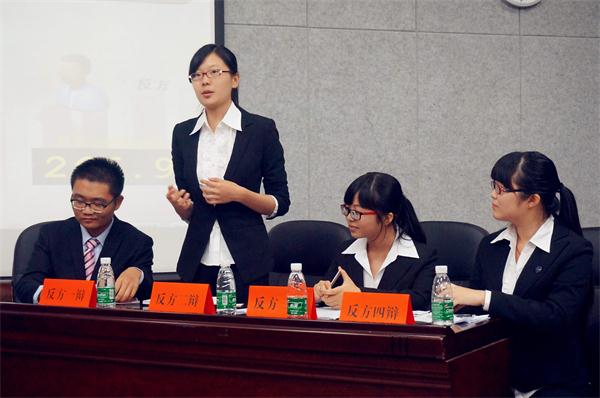 (通讯员 孙雅亭 皮轩)11月23日晚7点,我院与旅游学院在文学院217教室举行“马思特”杯新生辩论赛复赛,这也是新传院小组赛的第二轮比赛,出席比赛的评委有文学院讲师周葵葵老师、前校辩队成员翟梦迪、前音乐学院院辩队成员王振祥,到场嘉宾分别是旅院学生会主席邢荣娟、副主席张路路,我院学生会主席冯择佳、副主席陈宣佑和团委副书记杨刚。