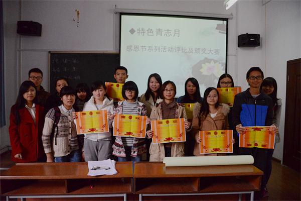 (通讯员 程佳雯 孙昕健)11月26日中午12点半,我院青志协在学院315教室举行了“特色青志月——感恩月系列活动颁奖大赛。莅临现场的评委有院团委素拓部部长钟晴、宣传部部长李佳蔚、组织部部长林梦希以及青年传媒中心记者部部长周子杨。
