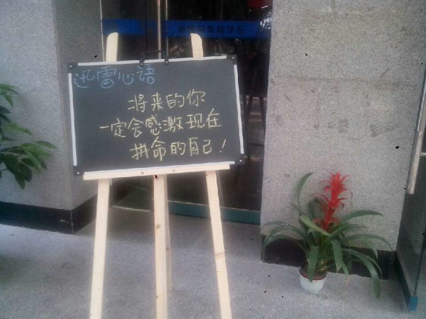 立在学院门前的小黑板、楼内盆栽里的小卡片、黑板上温馨的话语,这些细小但不容忽视的改变都来自于 “迅雷” 的付出。此次“迅雷-心语”活动旨在为各位同学提供一个畅所欲言的平台,帮助同学们说出积在内心的话语并给与展示。活动期间,青年志愿者主要借助微博的平台来收集同学的心语投稿,通过黑板、卡片、黑板与微博四个平台进行展示。