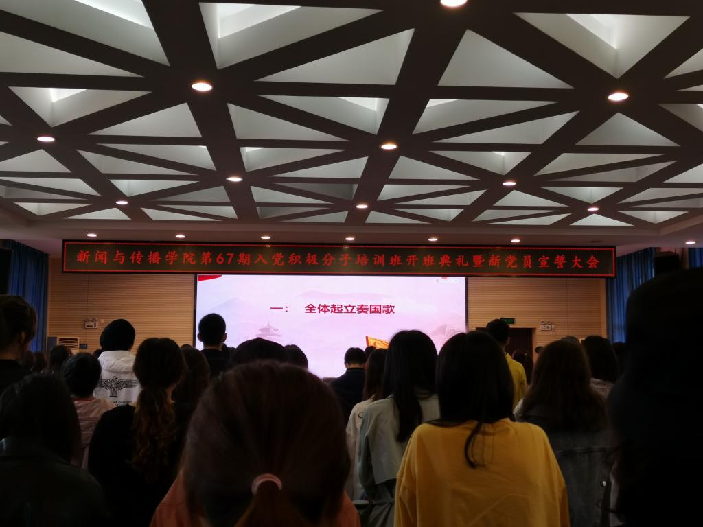 (通讯员 杨雨鑫 许可卿 何佳璐)11月9日上午,我院第67期积极分子开班典礼暨新党员宣誓大会在学院书山论坛举行。院党委书记李正益、院党委副书记王云、院党委办组织人事秘书符岚、辅导员陈安琪参加了此次大会,大会由辅导员彭丹妮主持。