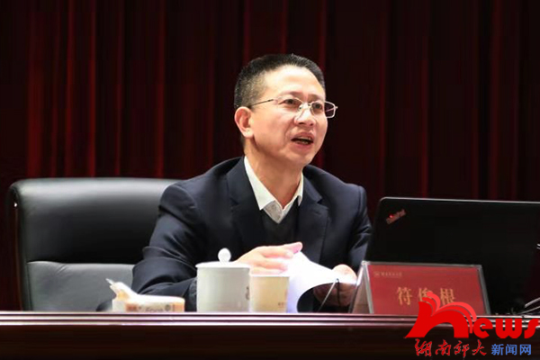 (通讯员 肖星南)为深入学习贯彻党的十九届四中全会精神,扎实推进主题教育的开展,11月28日下午,学校在国际学术报告厅举行了学习贯彻党的十九届四中全会精神省委宣讲团报告会,我院组织师生在书山论坛通过网络同步直播聆听了宣讲。省委宣讲团成员、省委统战部副部长符俊根作宣讲报告,会议由蒋洪新主持。