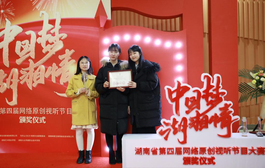 2019年12月25日,第四届湖南省网络原创视听节目大赛结果揭晓,我院学生喜获5项大奖,获奖数在省内一本高校中位居第一。我院作为协办单位,获得“年度优秀组织奖”。