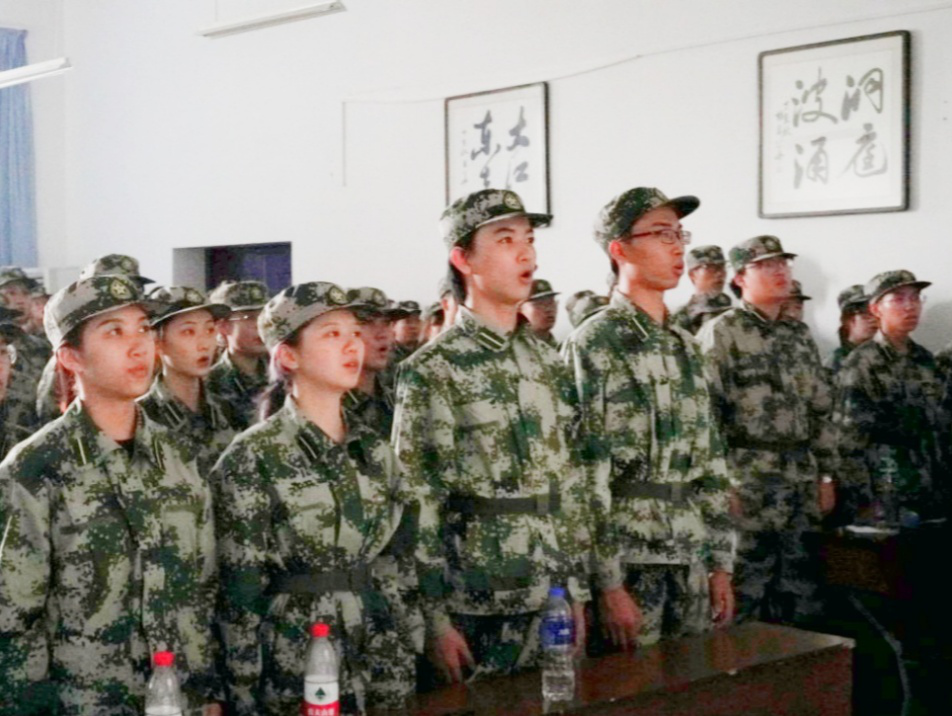 学生代表田子琦发言,他呼吁我们要在军训中培养军人的意志,学习军人的作风,坚守军人的纪律;端正态度,听从指挥;全心投入,奋勇拼搏;团结合作,互帮互助。