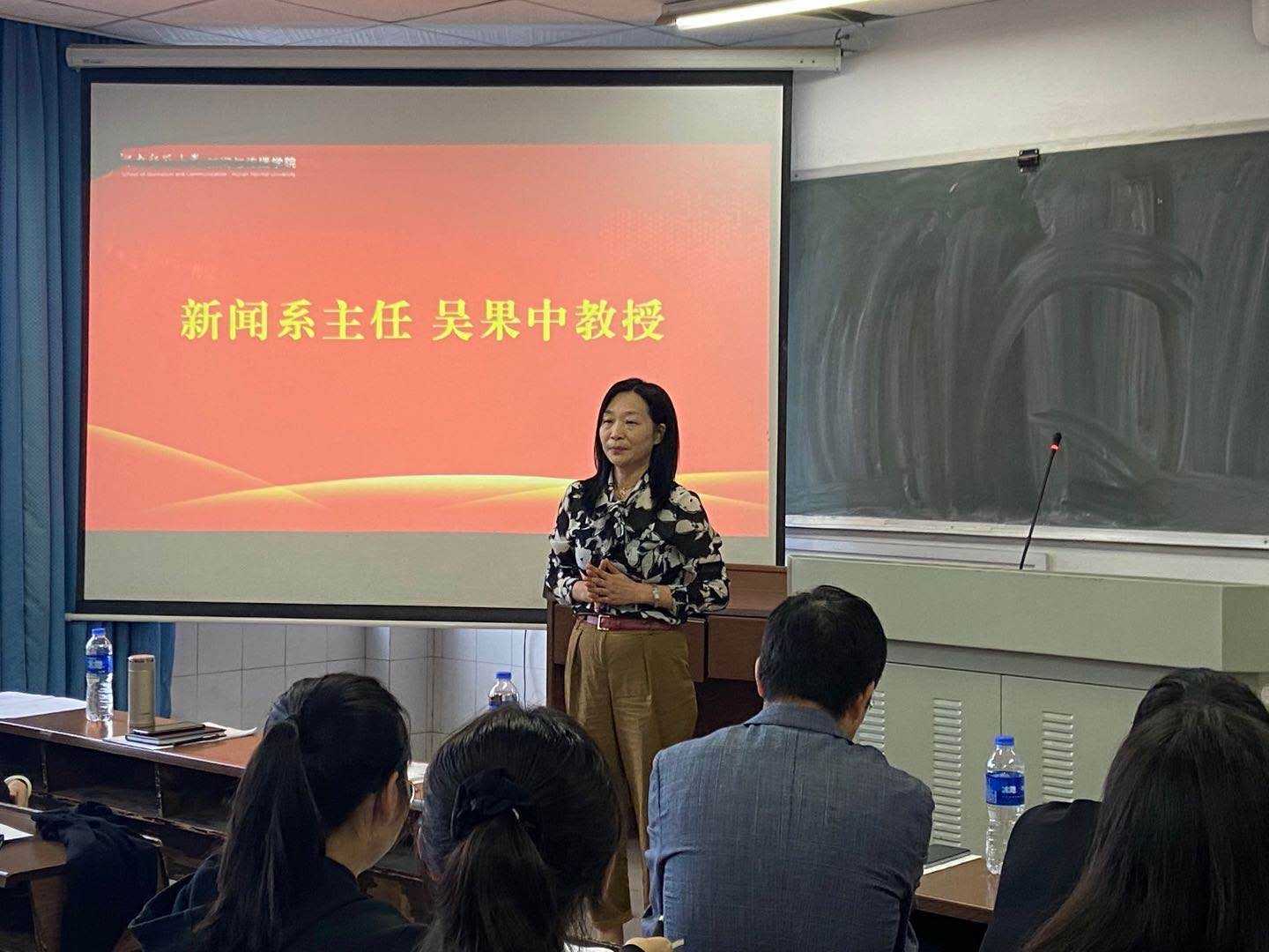 肖燕雄对20级新生的到来表示热烈欢迎,并详细介绍了我院新闻实验班的发展历程、人才培养方式、人才培养特色等方面内容,提倡新生要多阅读、多思考;王云从学习、生活、班级、个人等方面向新生提出建议,希望学生树立专业目标,做好人生规划;吴果中介绍了新闻系的历史沿革,提倡新生在广读、精读、善读的基础上享受生活、加强交流、认识世界,在新闻这个有意义的专业成就自己有意义的人生;翁杨和新生亲切交流后,表示会做好新生的“学伴”,引导陪伴同学们成长成才;新生代表程妤婷表示会坚定专业理想,努力学好专业知识;李正益建议新生把握加入新闻实验班的“幸福”和“幸运”,在未来的学习生活中要坚定目标、勤学苦练,并祝愿新生学有所获、学有所成、学有所进。