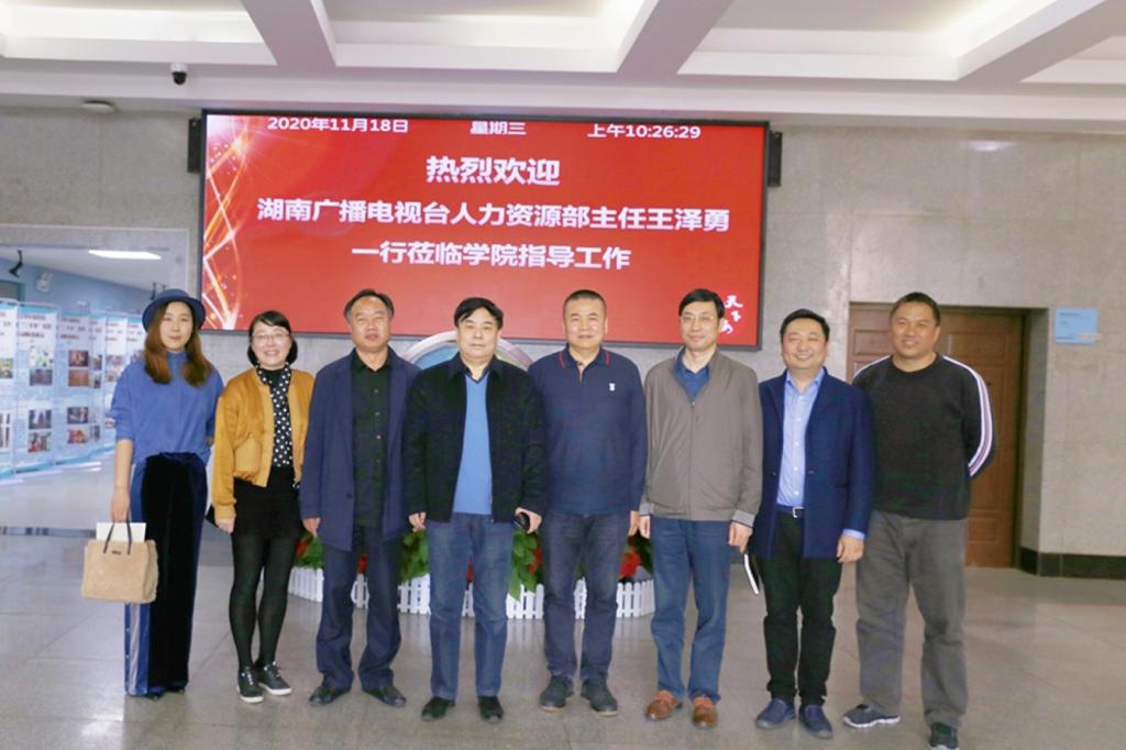 11月18日上午,湖南广播电视台人力资源部主任王泽勇、人力资源部副主任周志强、人力资源部何柳青、邹堃、宋沁融一行人来我院考察交流。座谈交流会在二楼会议室举行,院长尹韵公、副院长肖燕雄、党委副书记王云、部校共建联络员单文盛出席会议。