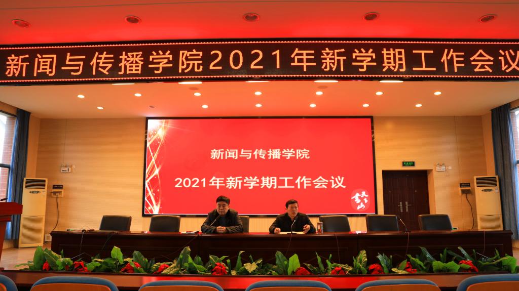 2月28日下午,我院在书山论坛召开2021年新学期工作会议。会议由院党委书记李正益主持,院长尹韵公作新学期工作报告,党委副书记王云,副院长肖燕雄、闵素芬、周国清出席会议。