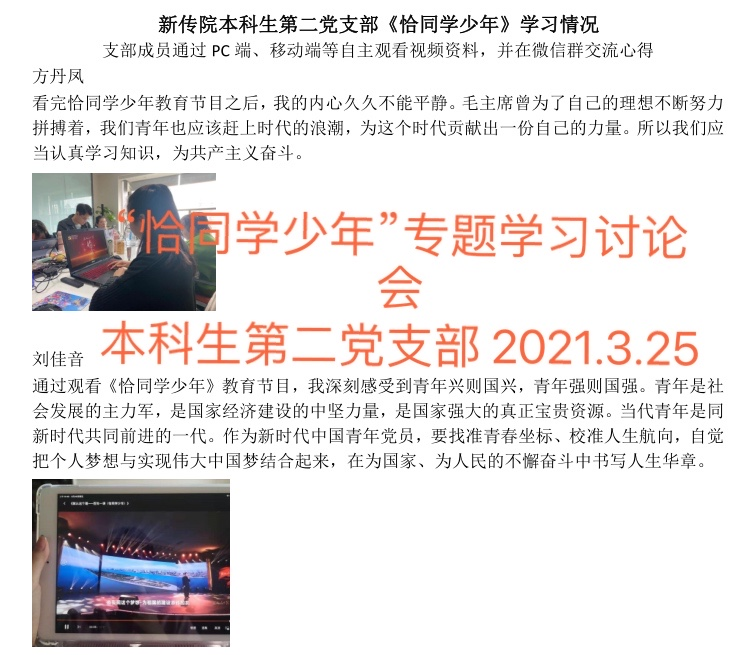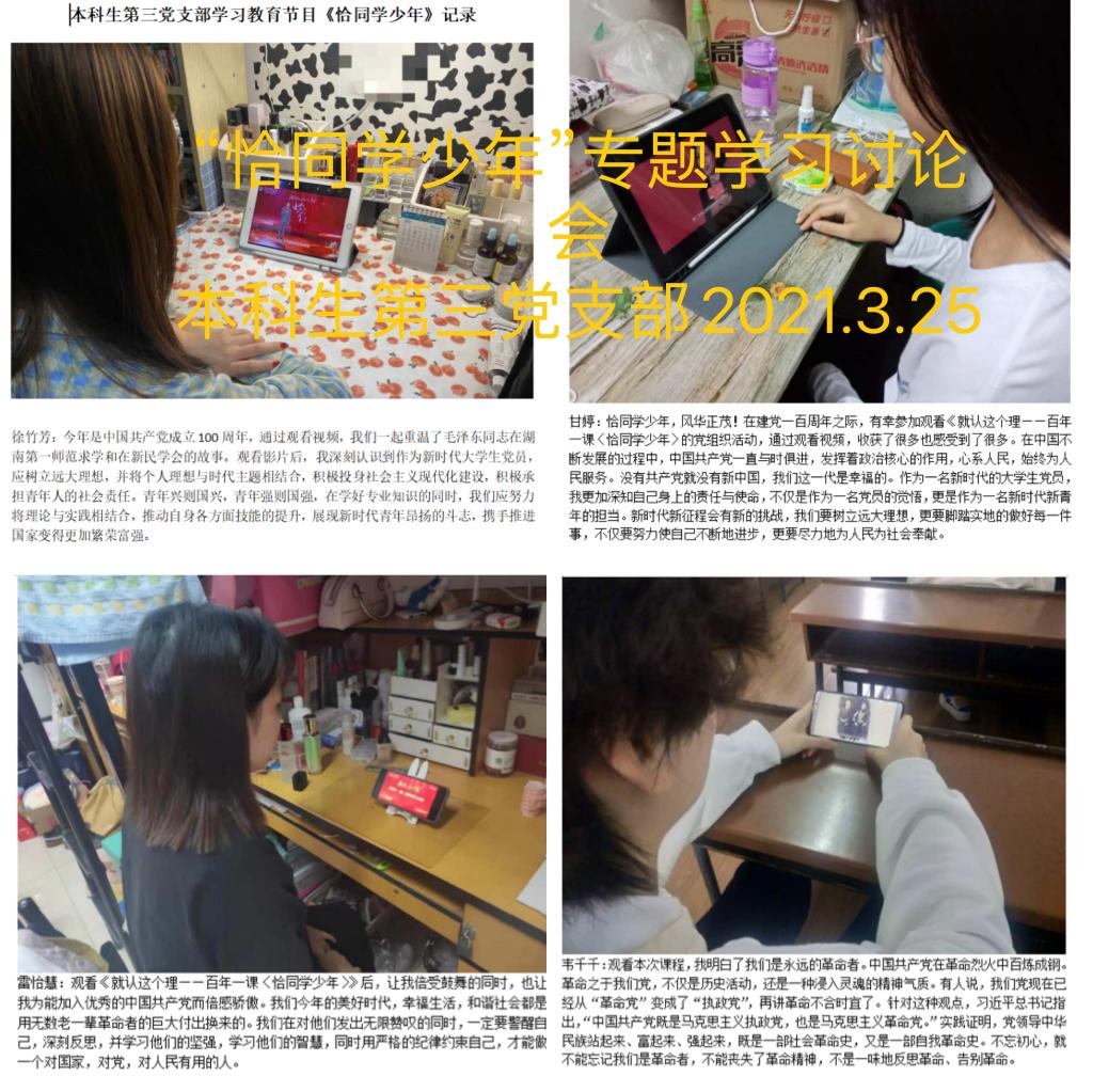 2021年3月25日下午,学院各党支部开展党史学习教育《就认这个理——百年一课〈恰同学少年〉》专题学习。