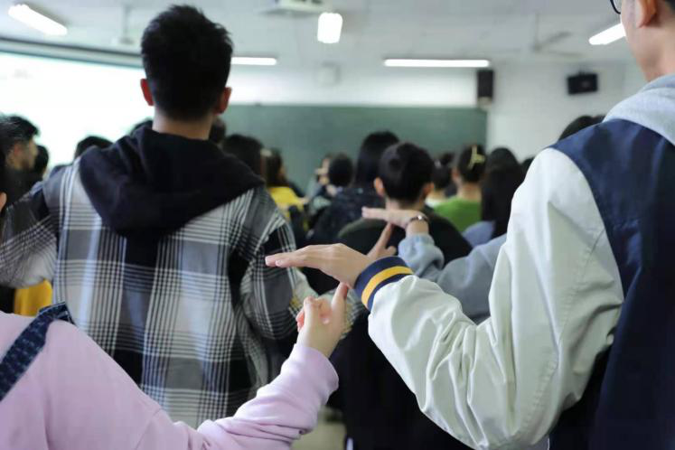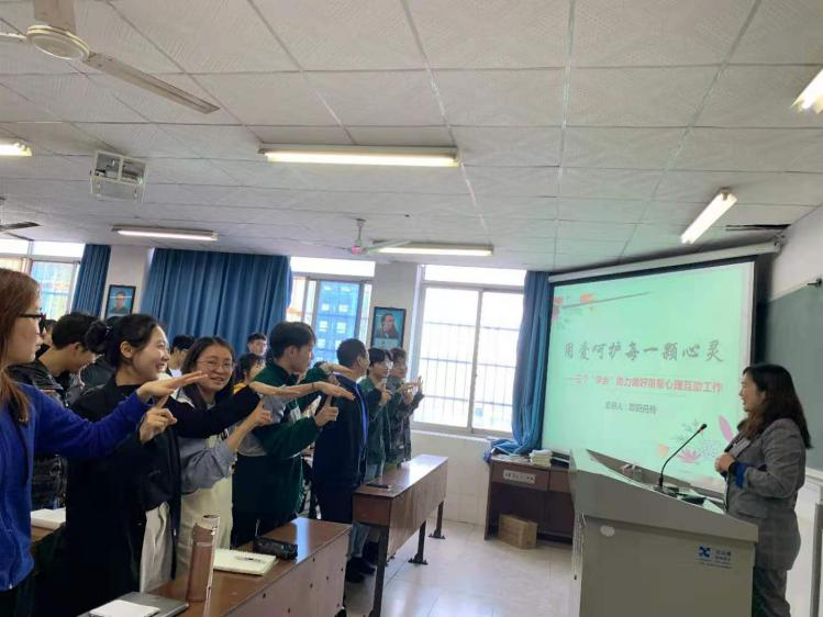 培训会议开始之前,欧阳丹玲带领寝室长和朋辈心理辅导员们一起做游戏,以此方式开启了一场关于心理健康教育的互动交流。在会议过程中还穿插了一些大学生心理问题案例,充分说明了大学生心理健康互助的重要性。