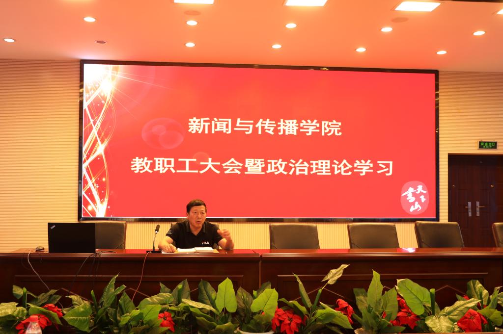 2021年6月17日下午,我院在书山论坛召开教职工大会暨政治理论集中学习会议。会议由院党委书记李正益主持,院长尹韵公,副书记王云,副院长肖燕雄、周国清、闵素芬出席会议。