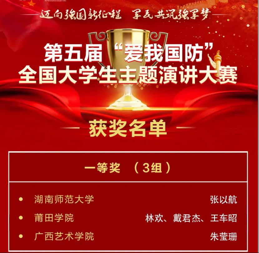 我校高度重视此次比赛,经学生工作部(处)、武装部的统筹安排,在全校各兄弟学院的通力配合以及国汉院、梦行者团队、音乐与技术实验中心团队的大力支持下,我院组织承办“爱我国防”主题演讲比赛。自2021年9月中旬起,通过线上、线下宣传,学院初赛、学校复赛选拔,专家、老师辅导等环节,推选出我院张以航、刘雨薇和教科院文艺三位同学代表学校参赛。