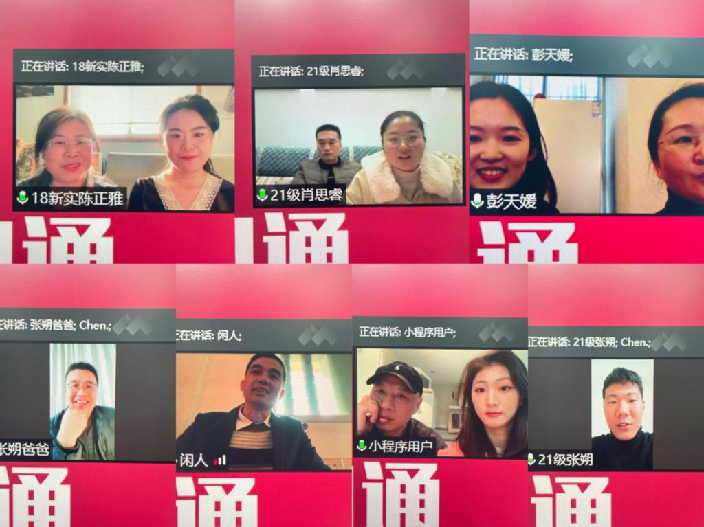 在交流环节中,家长们对学校人才培养方式表示肯定、对学院人才培养成效表示感谢,同时也相互分享了一些关于子女教育的经验。学院党委副书记张小春向家长们简要介绍了学院沿革、人才培养、学科建设与发展等方面情况,同时希望在今后的育人工作中能够多交流、多沟通、多关注,在孩子的成长过程中能够多鼓舞、多引导、多参与,家校联动凝聚合力,护航孩子走好未来人生的每一步。各年级辅导员对家长提出的问题进行答疑,对学生本人发展的优势与不足进行交流并给予适当建议,同时对身处疫情严重地区的家庭表示慰问,最后也给所有学生与家长提前送上了虎年祝福。