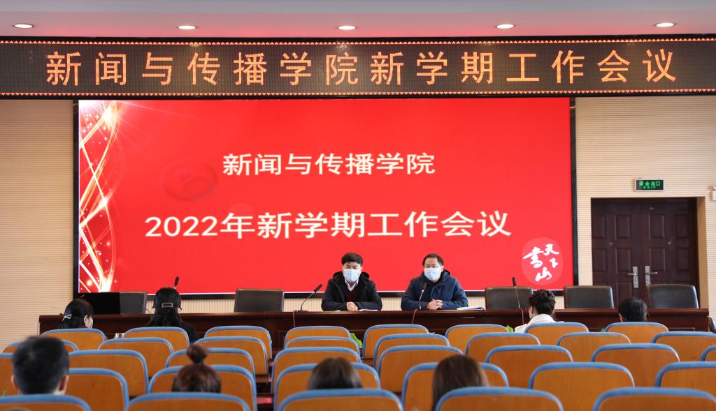 2022年2月24日下午,我院在书山论坛召开2022年新学期工作会议,院长尹韵公,院领导王云、周伊慧、张小春、燕道成、李琦、王海刚出席会议,大会由院党委书记沈贤岚主持。