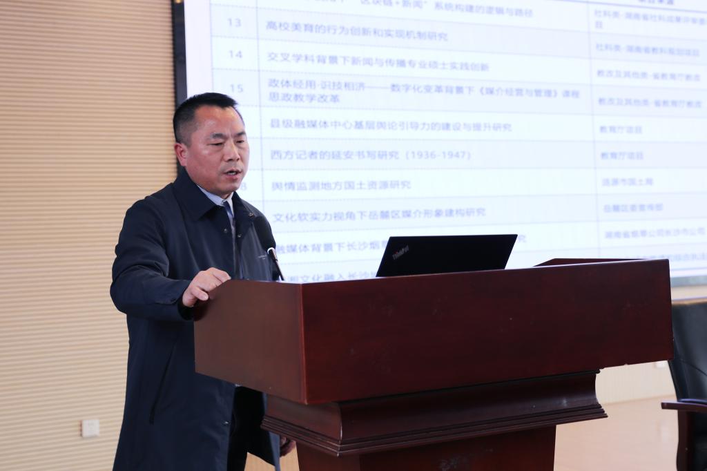 王海刚总结了学院部校共建和对外合作工作的成果,并从媒校共建、国际传播学科建设、打造书山品牌、部校共建实习基地建设、师资队伍建设、与人大新闻学院深度合作等方面对学院下一步工作提出了设想与规划。