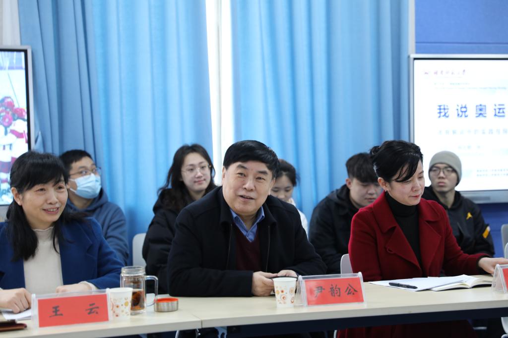 (通讯员 陈天怡 管心如)东风好作阳和使,逢草逢花报发生。3月4日上午,我校第141期教师教学思享会在我院402智慧教室举行。我院教师柳亚鹏博士以“我说冬奥——体育解说中的实践与探索”为题,以奥运解说的实践经历为切入点,分享了对《体育解说》课程本科教学的思考,为在座师生带来了冬奥会的“幕后声音”。我院院长尹韵公、正处级组织员王云、党委副书记张小春、副院长周伊慧、副院长燕道成、长沙学院播主系教师王若蘅、教师教育学院教师教学能力发展科科长廖志华等50余名师生出席会议。会议由我院教学副院长李琦主持。