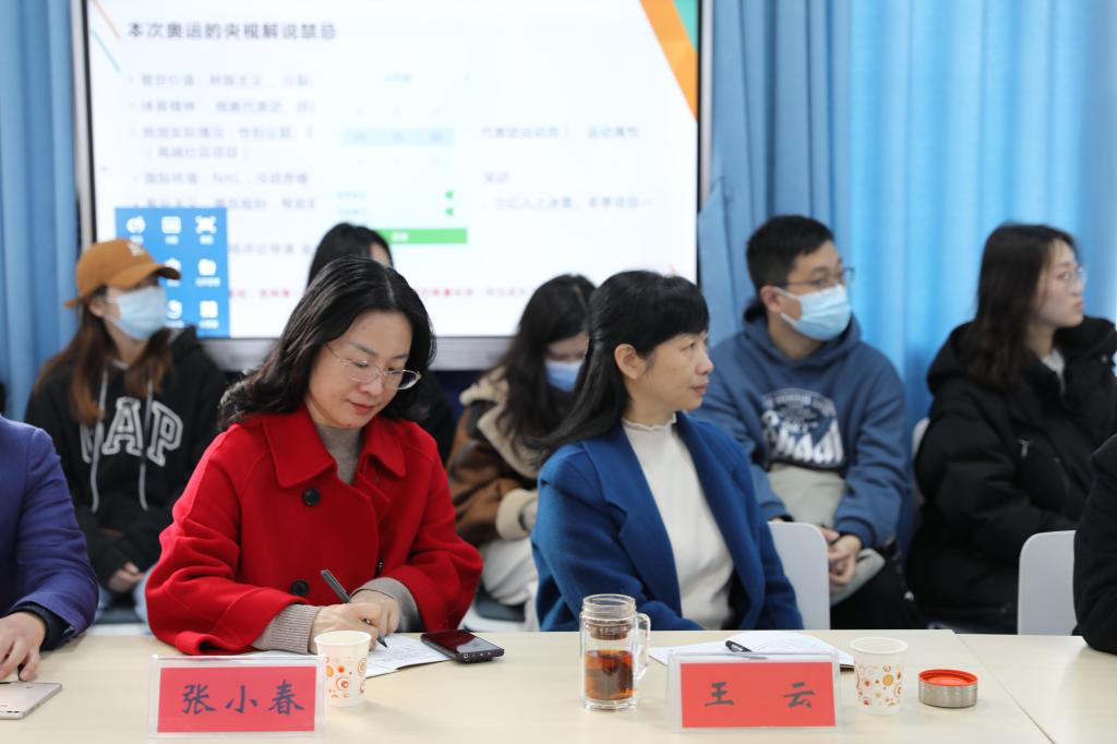 会议最后,李琦副院长进行了总结发言。她表示,为全面振兴本科教育,教育部相继推出一流专业“双万计划”、一流本科课程“双万计划”等一系列改革措施,致力于“打造金课金师,杜绝水课水师”。其中,教学研讨是推动课程结构、课程内容、教学方式方法改革和助力一流课程建设的重要方法之一。冬奥会刚刚落幕,柳亚鹏老师带着讲解“双奥”的宝贵经验从主播台回到讲台,其课堂教学不是专业知识的简单讲授,而是行业实践与专业教学的深度对话。本次思享会组办的初衷即为在展示、探讨专业与行业、产业的融合关系中,推进课程内容与形式的与时俱进,同时带动全院青年教师加强教学研讨,不断精进教学内容与教学方法,不断提升教学能力和教学水平,以过硬的本领落实好教学工作。