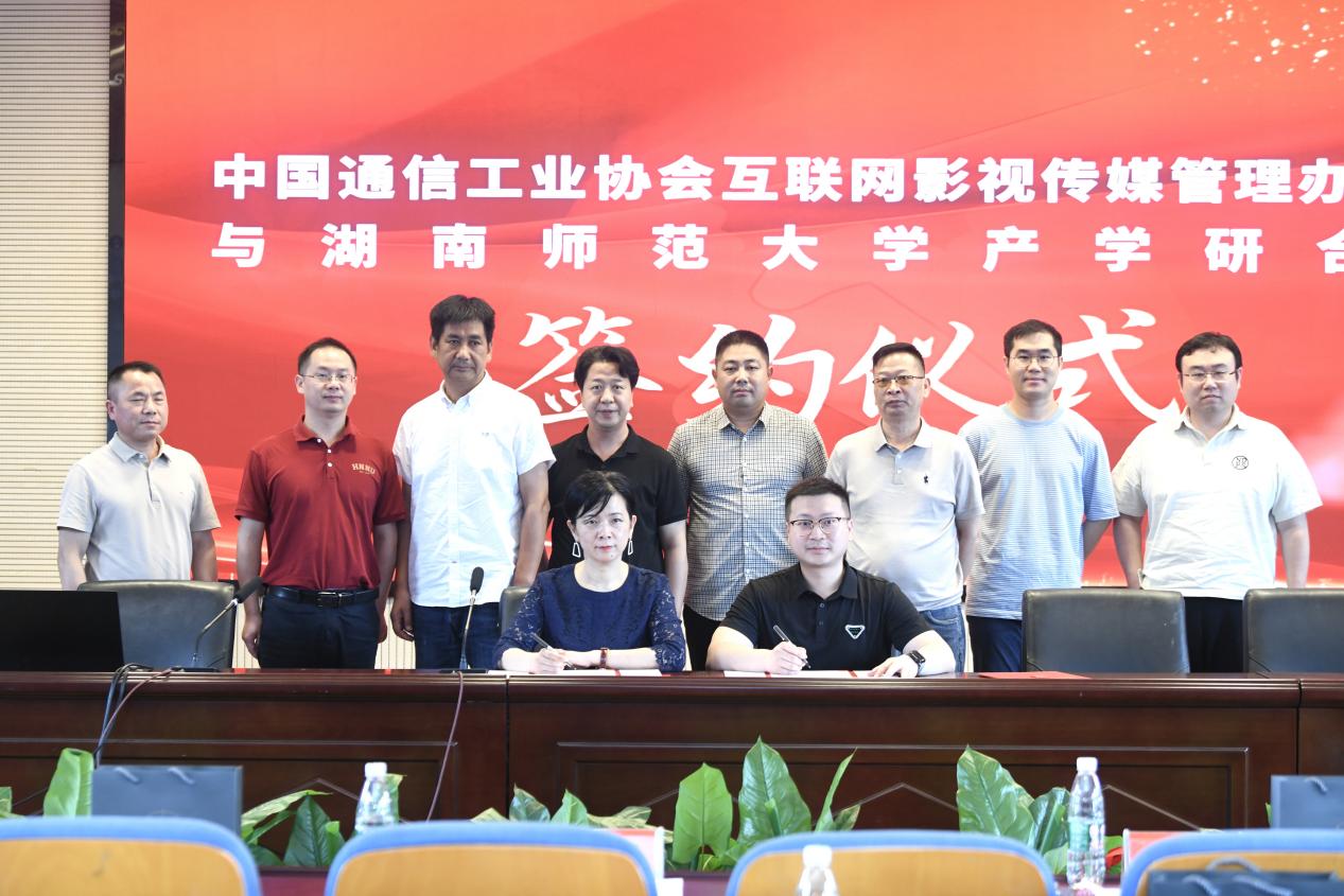 (通讯员 黄杨帆)为充分发挥“传媒湘军” 优势,打造具有中国特色、湖南特色的“世界媒体艺术之都”,6月17日上午,中国通信工业协会互联网影视传媒管理办公室与英国官方365上市产学研合作协议签署仪式及新媒体人才培养计划启动仪式在我院书山论坛成功举行。此次仪式由我院党委书记沈贤岚主持。出席仪式的有中国通信工业协会互联网影视传媒管理办公室主任冯惠斌、常务副主任卢建军、副主任覃博伦,英国官方365上市校友总会秘书长梁勇,365英国上市集团党委书记沈贤岚、副院长周伊慧、副院长燕道成,长沙学院影视艺术与文化传播学院副院长荣斌,湖南大众传媒职业技术学院365英国上市集团副院长罗琦,湖南工业大学电影学院代表李佳龙,中国民主同盟湖南省委社会服务处李丽霞,马栏山视频文创园管理委员会代表旷颖,中广天择常务副总经理、天择微链董事长关敬蓉一行,湖南银河教育董事长覃文等。