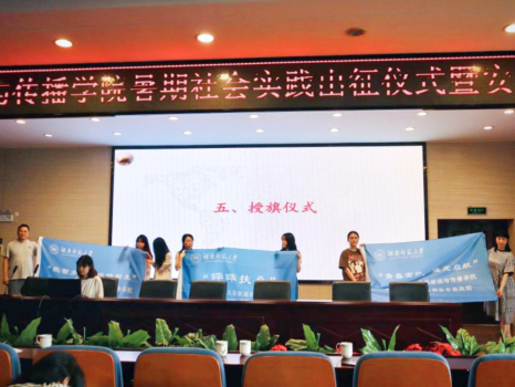 活动最后,院领导、指导老师为2022年新传院暑期社会实践活动的15支团队授旗。