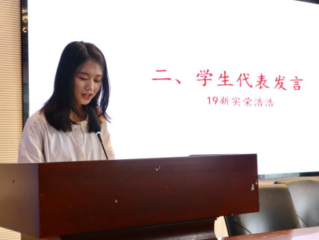 随后,19级新闻实验班荣浩浩作为学生代表进行了发言。她认为参加“三下乡”是一件辛苦但有意义的事情,并分享了做好“三下乡+”、打好信息战、任务做深做扎实及团结奋战等心得。