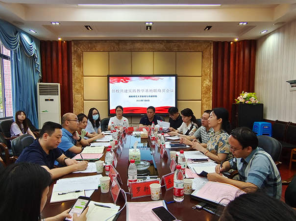 (通讯员 李嘉圃)7月8日下午,部校共建实践教学基地联络员会议在我院二楼会议室举行,省委宣传部新闻处副处长邓彪出席此次会议,湖南日报社、湖南广播电视台、湖南出版投资控股集团和新湘评论杂志社四大实习基地的联络员,以及院党委书记沈贤岚、副院长李琦、王海刚和实习领队老师到场参会。会议由院党委副书记张小春主持。