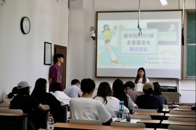 2022年9月5日中午,2022级辅导员王洋与14位小辅于学院403教室进行名誉寝室长面试选拔并于6日确定最终名单。7日中午,2022级辅导员王洋,2020级14位小辅,2021级37位名誉寝室长于学院101教室进行见面交流。王洋老师对迎新工作的要求及后续活动的展开给出了建设性意见,对小辅与名誉寝室长的相互配合提出了指导性建议,着重强调了新生工作的安全保障及疫情防控工作,有效引导新生规范有序的进行报到。