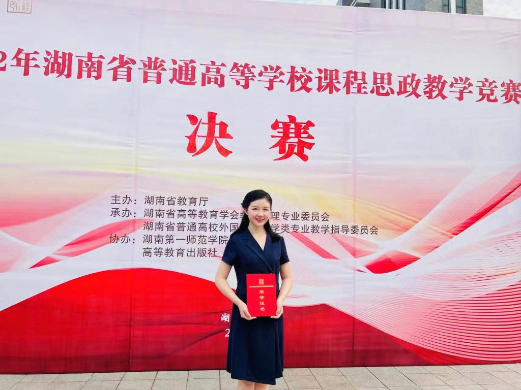 本次比赛由湖南省教育厅主办,由湖南第一师范学院与高等教育出版社协办。自今年3月启动以来,来自全省的181个团队晋级决赛。现场决赛分文科类、理工(医学)类、外语类三大类别七个组别进行,参赛教师需在20分钟内完成说课、课堂教学展示和现场问答三个环节。经过专家评审,最终共有27支队伍获得一等奖,其中,人文社科类获奖团队仅有5支,陈淼老师及教学团队位列其中。