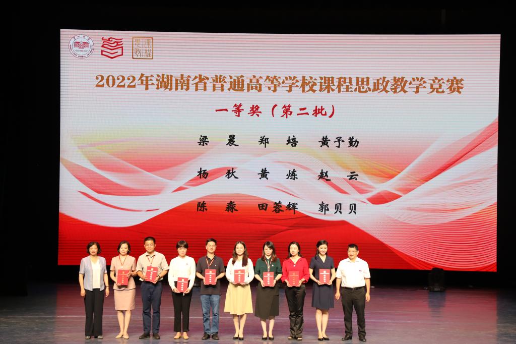 (通讯员 卢亚霞)9月16日,2022年湖南省普通高等学校课程思政教学竞赛现场决赛在湖南第一师范学院圆满落幕。经过校赛、复赛与决赛的激烈角逐,我院选送的由陈淼、颜湘君、张弛、李艳、陈天嵩等五位老师组成的教学团队荣获人文社科组一等奖,为此次比赛本校唯一一个斩获一等奖殊荣的队伍。