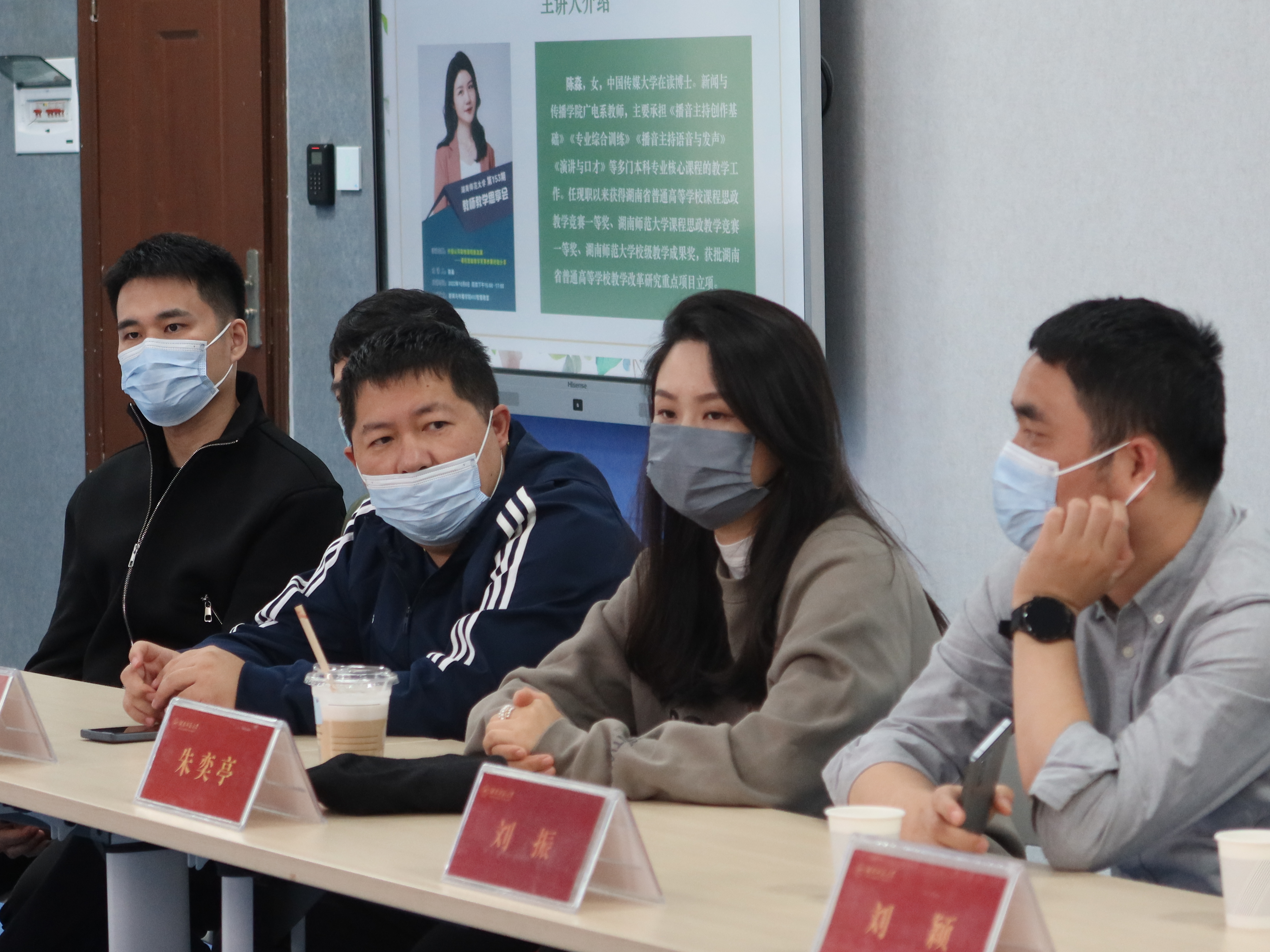 互动环节,与会教师踊跃发言,进行了较为深入的研讨交流。我院播音与主持专业负责人颜湘君老师认为,课程建设是不断建构、不断推翻的过程,要善于积累,积极运用前期成果。我院网络与新媒体系系主任段峰峰老师强调教学案例的重要性,他表示,让学生听得高兴、学到知识才是好课程。各位青年教师也分别就自己的研究领域阐述了对课程思政的见解。大家表示,通过此次思享会,更加深刻地认识到了课程思政对传媒专业人才培养的重要性和迫切性。