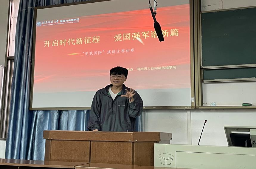 此次比赛共分为四项流程。每位参赛选手以“爱我国防”为主题进行了六分钟以内的脱稿演讲。新传学子凭借自身专业优势和经历,表现十分优异,赢得阵阵掌声。