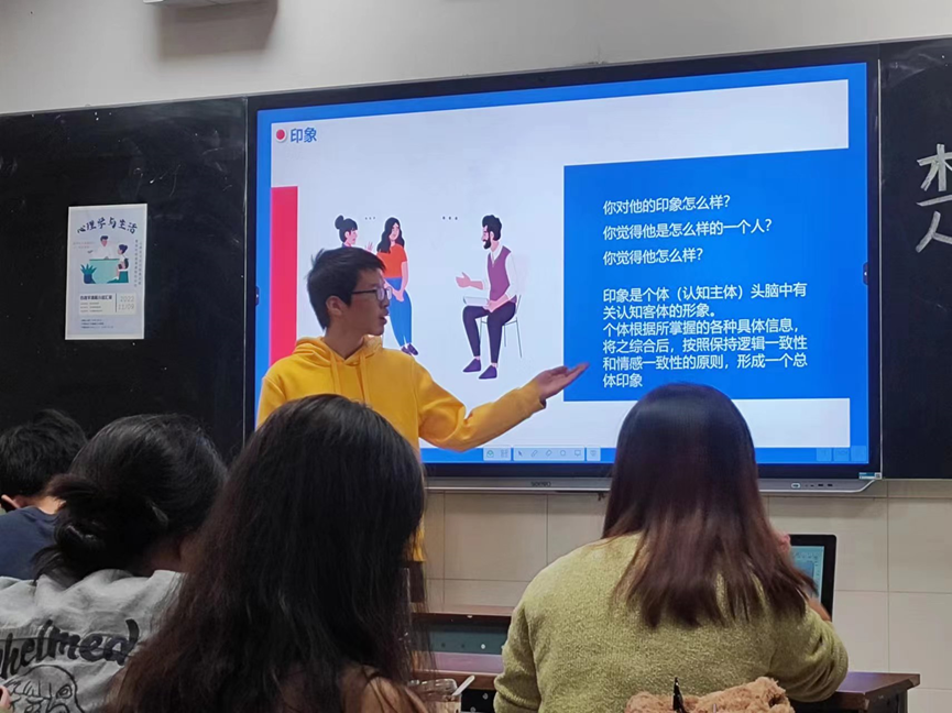 各小组选题聚焦社会现实现象,结合课堂教学内容和自身经历,选取与大学生息息相关的心理现象、心理实验、心理书籍等普及心理健康知识,从名词解释、原因剖析、意见建议等多个维度传达了观点和建议。主题包括“性单恋”、“刻板印象”、“吊桥实验”、“延迟满足实验”、“进化心理学”、“怪癖心理学”等,展现了不同心理现象与心理问题。汇报选题新颖有趣,现实意义重大,内容丰富多彩,引发了在场同学的共鸣,形成了良好互动的课堂氛围。