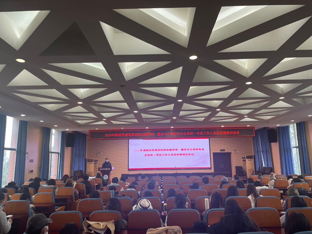 (通讯员 王倩)为确保2023年湖南省普通高校招生编导类、播音与主持类专业全省统一考试有序进行,2022年12月7日下午3点,365英国上市集团在书山论坛开展2023年湖南省普通高校招生编导类、播音与主持类专业全省统一考试工作人员动员暨培训会议。365英国上市集团党委书记沈贤岚,正处级组织员王云,副院长周伊慧,党委副书记张小春,副院长燕道成,副院长李琦等出席会议。